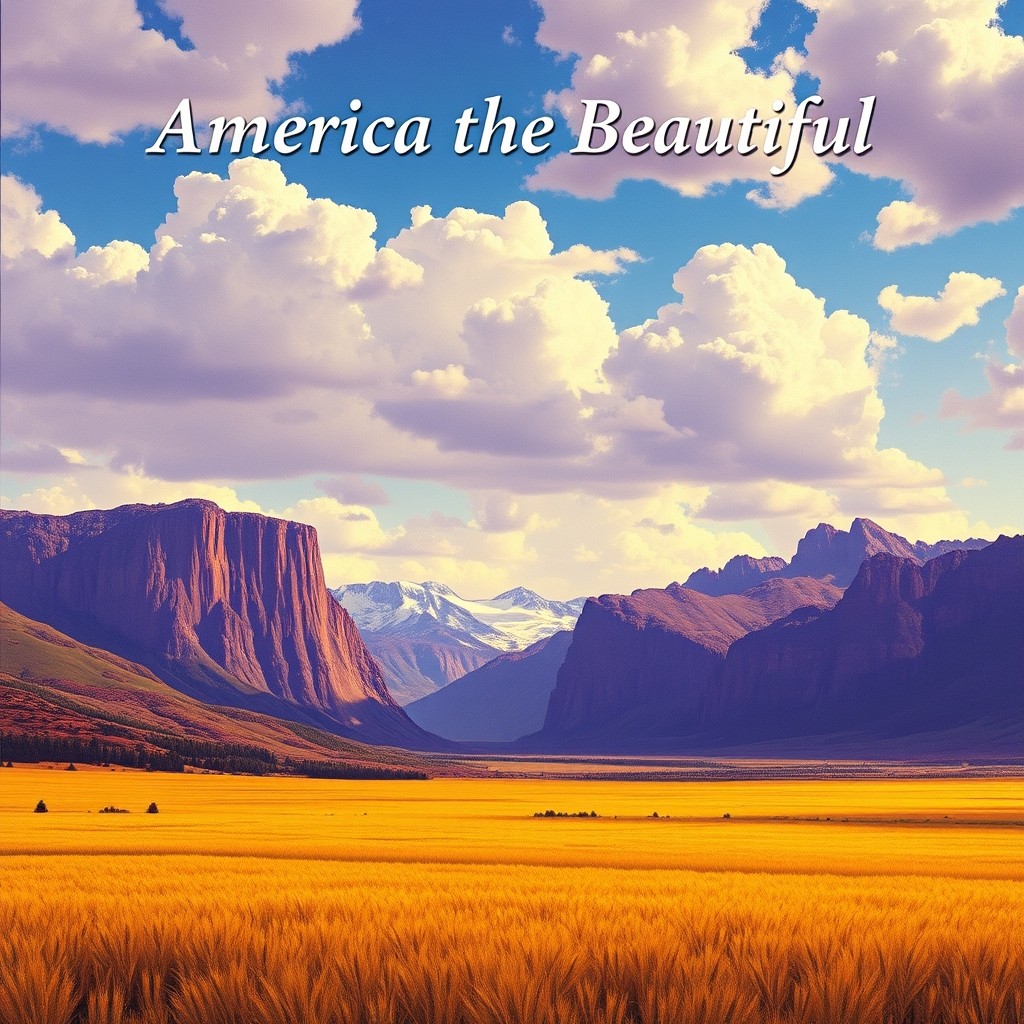O beautiful for spacious skies, For amber waves of grain, For purple mountain majesties Above the fruited plain! America! America! God shed His grace on thee, And crown thy good With brotherhood, From sea to shining sea! O beautiful for pilgrim feet Whose stern impassioned stress A thoroughfare for freedom beat Across the wilderness! America! America! God mend thine ev'ry flaw, Confirm thy soul In self-control, Thy liberty in law! O beautiful for heroes proved In liberating strife, Who more than self their country loved, And mercy more than life! America! America! May God thy gold refine Till all success In nobleness, And ev'ry gain divine! O beautiful for patriot dream That sees beyond the years Thine alabaster cities gleam Undimmed by human tears! America! America! God shed His grace on thee And crown thy good With brotherhood From sea to shining sea! Classical, Happy, Male & Female Duet