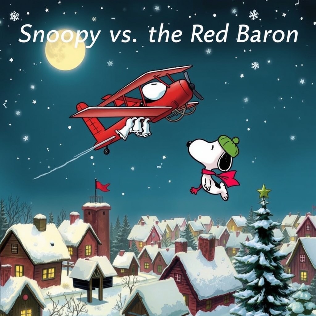 The news had come out in the First World War The bloody Red Baron was flying once more The Allied command ignored all of its men And called on Snoopy to do it again. Was the night before Christmas, 40 below When Snoopy went up in search of his foe He spied the Red Baron, fiercely they fought With ice on his wings Snoopy knew he was caught. Christmas bells those Christmas bells Ring out from the land Asking peace of all the world And good will to man The Baron had Snoopy dead in his sights He reached for the trigger to pull it up tight Why he didn't shoot, well, we'll never know Or was it the bells from the village below. Christmas bells those Christmas bells Ringing through the land Bringing peace to all the world And good will to man The Baron made Snoopy fly to the Rhine And forced him to land behind the enemy lines Snoopy was certain that this was the end When the Baron cried out, "Merry Christmas, my friend" The Baron then offered a holiday toast And Snoopy, our hero, saluted his host And then with a roar they were both on their way Each knowing they'd meet on some other day. Christmas bells those Christmas bells Ringing through the land Bringing peace to all the world And good will to man Classical, Happy, Male Vocal