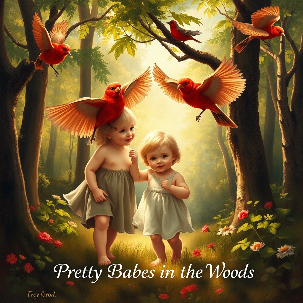 Oh, don't you remember, a long time ago, Those two little babies, their names I don't know They were stolen away one bright, summer's day And left in a wood, so I've heard folks say. Pretty babes in the woods Pretty babes in the woods Oh, don't you remember Those babes in the woods Now the day being gone and the night coming on Those two little babies sat under a stone They sobbed and they sighed, they sat there and cried Those two little babies they laid down and died Pretty babes in the woods Pretty babes in the woods Oh, don't you remember Those babes in the woods Now the robins so red, how swiftly they sped They put out their wide wings and over them spread And all the day long on the branches they throng They sweetly did whistle and this was their song Pretty babes in the woods Pretty babes in the woods Oh, don't you remember Those babes in the woods Classical, Happy, Male & Female Duet