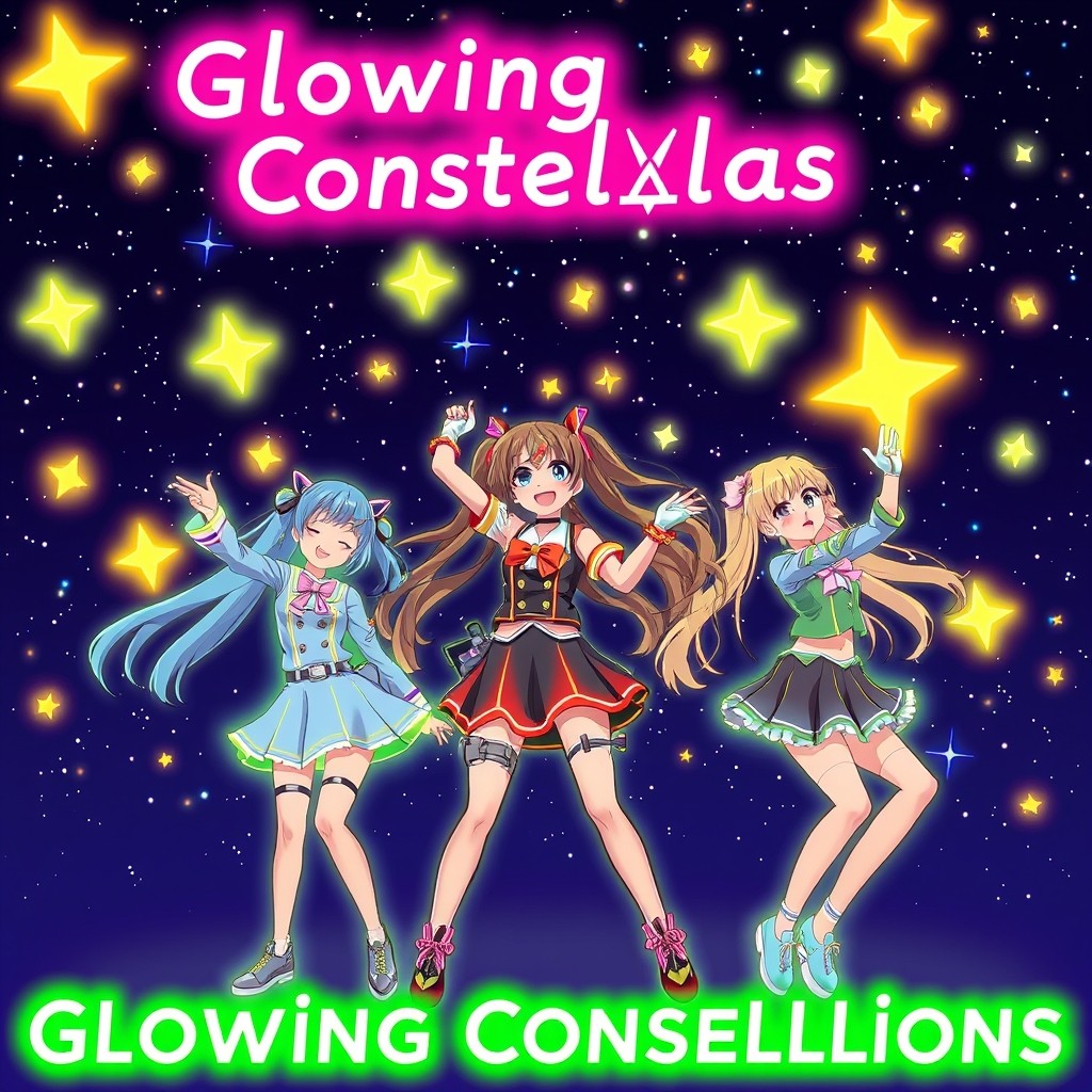 three girl anime band called Neon Pastallas. the song is called glowing constellations