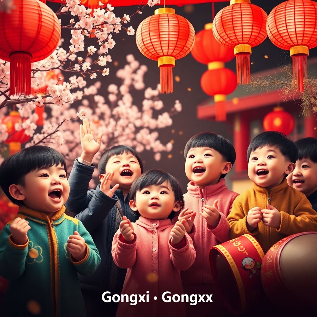 Themes of Renewal & Prosperity: Songs emphasize the end of winter and the arrival of spring, symbolizing new beginnings and hopes for wealth, health, and happiness. Festive Atmosphere Music is upbeat, often accompanied by drums, gongs, and firecracker sounds to heighten the celebratory mood. A simple, cheerful sung by children, wishing everyone Gongxi Gongxi, Xinnian Hao, Gongxi Ni Facai.