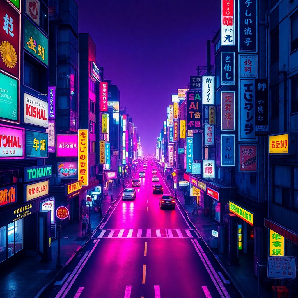 Tokyo lights, neon glow,