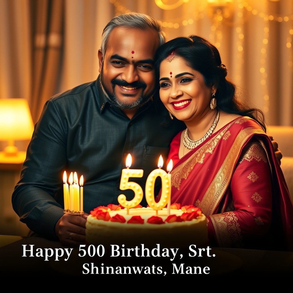 Make it for a husband named Srinivas Manem for his 50th birthday. Here is the text which is custom made which I want you to include the meaning and tell all the good characteristics of him like support, guidance, loyal, love and more Today is a very special day as you celebrate 50 wonderful years of your life. To me, you are not just my husband, but my greatest support, my strength, and my constant companion. Through every phase of life, you have stood strong with love, patience, and responsibility. The many moments we have shared together are memories I truly treasure in my heart. Your kindness, wisdom, and dedication to family make you a truly special person. I feel grateful for the journey we have walked together and the beautiful memories we continue to create. On this milestone birthday, I wish you good health, happiness, and many more peaceful and joyful years ahead. Happy 50th birthday to the man who means so much to my life.” ❤️