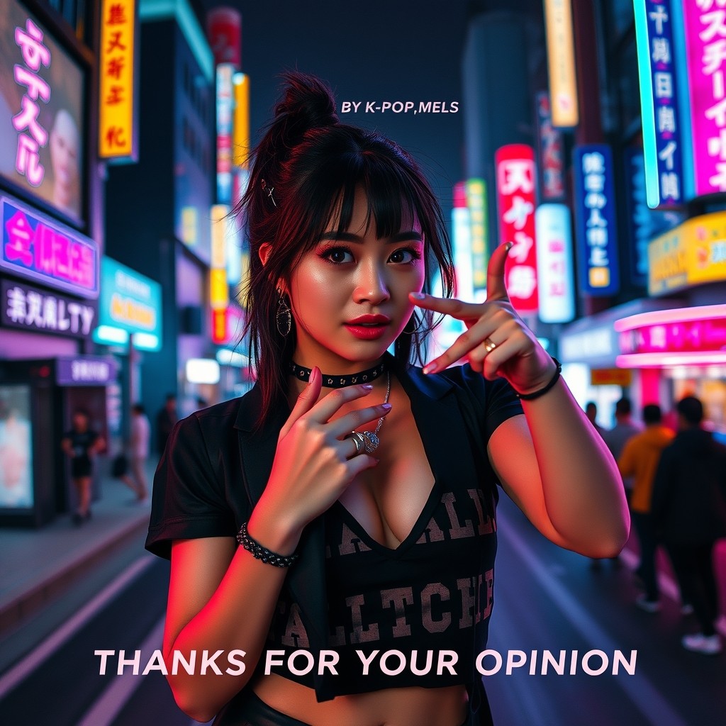 {K-POP, Pop, Sarcastic, mean, amused, dance, energetic, mocking, strong but soft female vocals, hype song, cityscape} **[Verse 1]** Here it goes again, talk again My favorite little trend You analyze my whole life Through your perfect lens My clothes, the way I speak You critique it all You dissect my every move Like it’s your call **[Pre-Chorus]** Go ahead, say it louder I’m dying to meet The perfect version of me Inside your beliefs **[Chorus]** Thanks for your opinion Though I didn’t ask Your imaginary version Is entertaining, at last Who I really am Seems less important than Who you think I should be Keep talking, I don’t mind Your noise fuels my shine **[Verse 2]** My smile is a problem My silence is cold Too loud is annoying Too soft is controlled You want me to fit Inside your mold If I don’t align Then I’m wrong, I’m told **[Pre-Chorus]** Your endless advice On how I should live You rewrite my story Without asking me **[Chorus]** Thanks for your opinion Though I didn’t ask Your imaginary version Is entertaining, at last Who I really am Seems less important than Who you think I should be Keep talking, I don’t mind Your noise fuels my shine **[Rap Verse]** Mirror, mirror on your feed You project, not me Keyboard throne authority Watching silently My life’s not your debate Your checklist, your fate I don’t have the time to bend Or to accommodate Whisper loud, speculate I just elevate Your words are background noise White noise — I’m great **[Bridge]** Say whatever you like I’ll be just fine Living my life On my own time **[Final Chorus]** Thanks for your opinion Still didn’t ask Your made-up perception Just makes me laugh Who I really am Will never agree With who you want me to be Keep talking all night I’ll keep living my life