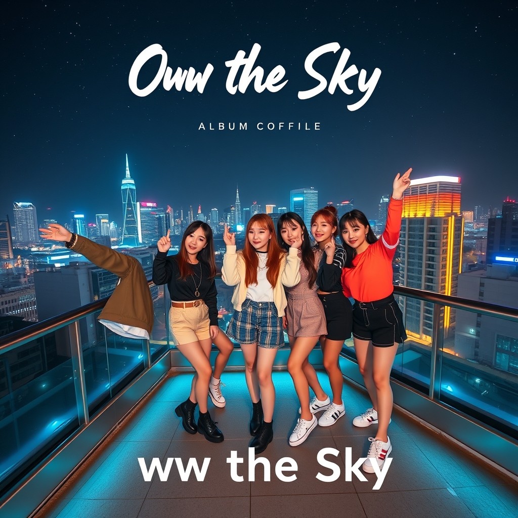 K-pop style cute,Melody Verse 1 깊은 밤, city glow 위에 서 있어 차가운 공기마저 날 깨워 더 흐릿했던 dreams, 선명해져 지금 이 순간 I’m taking control Pre-Chorus 멈췄던 시간 다시 흘러가 내 심장은 louder, louder now Chorus 빛나 like we own the sky 절대 꺼지지 않아, burning high 소리 질러, feel the fire 이 밤 끝까지 take me higher Post-Chorus Oh oh oh, 따라와 right now Oh oh oh, 멈추지 마 빛이 번져, neon sign 우린 끝없이 we gonna shine Verse 2 수많은 별들 사이로 run away 한계를 넘어 we don’t play safe 두려움 따윈 뒤로 던져 새로운 나를 다시 꺼내 Pre-Chorus 어둠 속에서도 빛을 봐 우린 결국 rise, no lie Chorus 빛나 like we own the sky 절대 꺼지지 않아, burning high 소리 질러, feel the fire 이 밤 끝까지 take me higher Bridge 지금 이 순간 freeze it all 떨어져도 다시 we stand tall 손을 들어 touch the light 영원히 끝나지 않을 night Dance Break La la la, 더 크게 shout La la la, turn it up now 심장이 beat, beat, beat so loud 온 세상이 hear us now Rap Verse Yeah, 달려가 nonstop, we don’t slow down 한계를 깨부숴, we run this town 빛을 따라 올라 top of the world 두려움 따윈 없어, let it all burn Final Chorus 빛나 like we own the sky 이 순간은 영원히 never die 소리 질러, feel the fire 끝을 넘어 take me higher Outro Oh oh oh, 기억해 now Oh oh oh, we won’t bow 빛이 번져, endless dream 우린 계속 living the scene