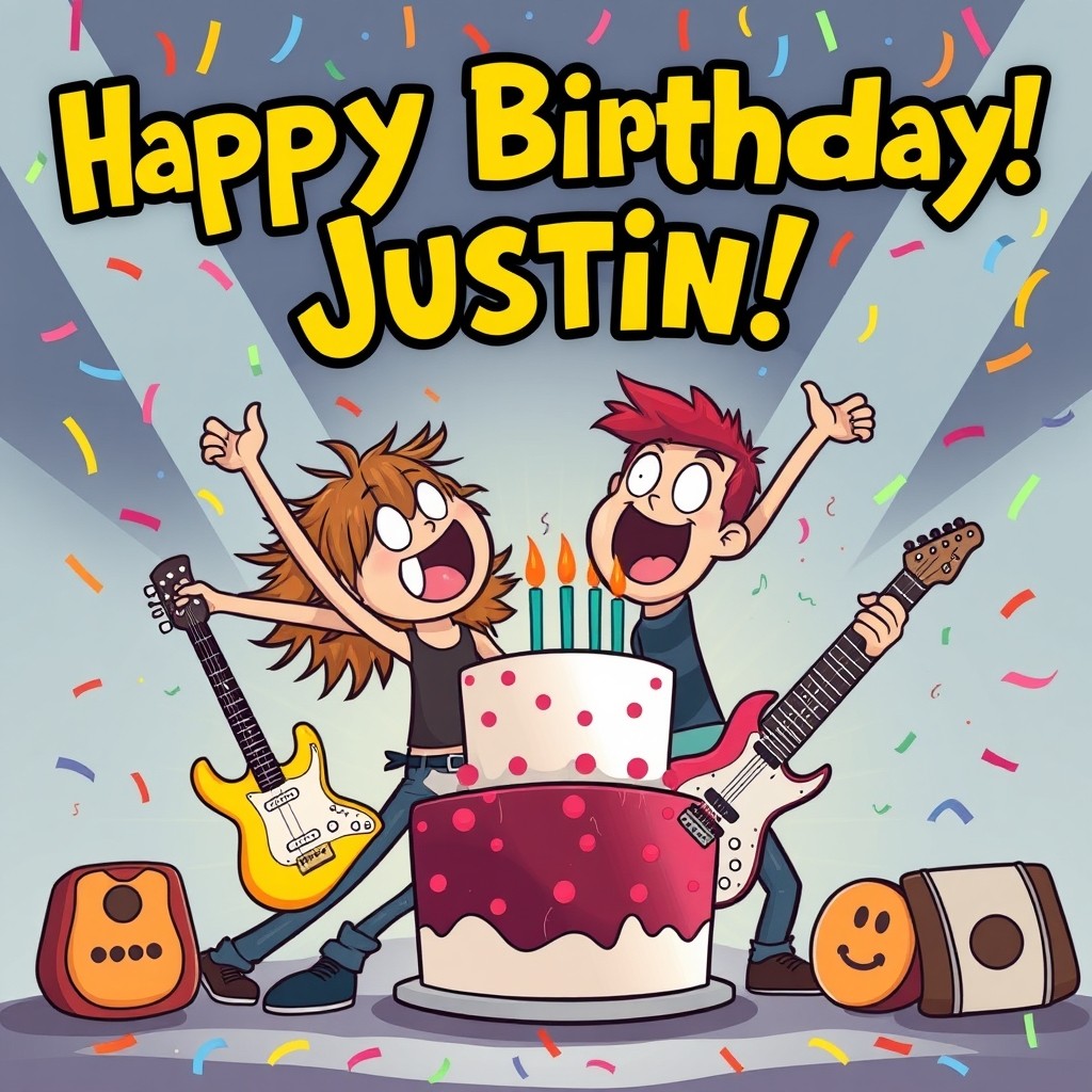 happy birthday justin with rock style and funny