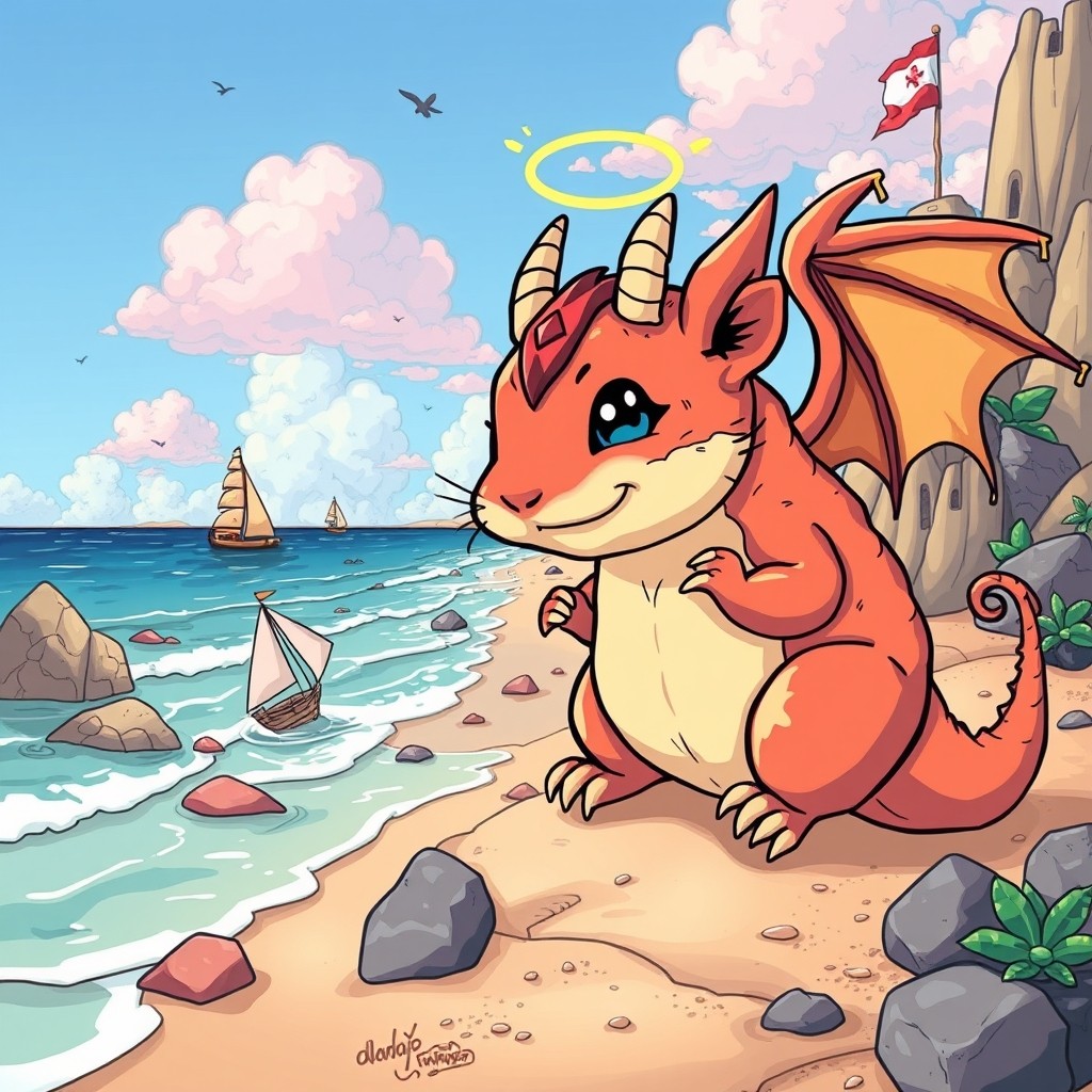 manga cute, beach vibe, medivial, fantasy angelic voice dragon hamster vibe